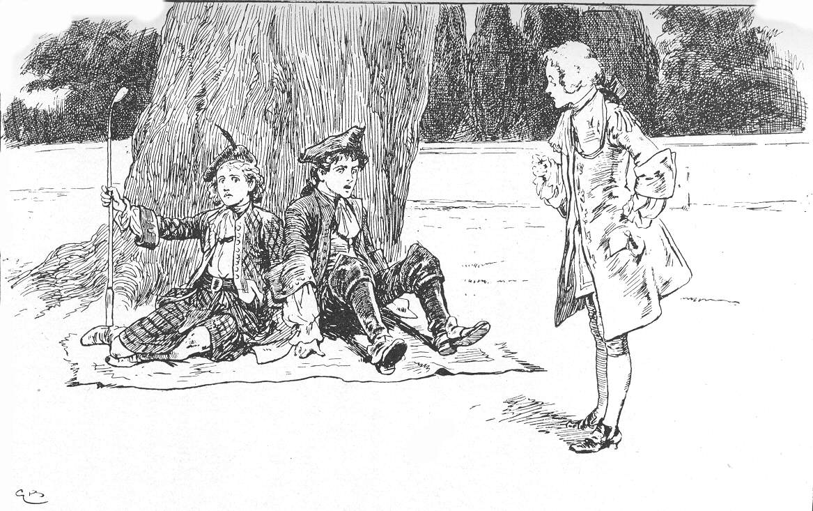 “There’s very little use in preaching,” his Majesty used to say, “to a man, or rather a boy, of another generation. My taste was for books; I only took to adventures because I was obliged to do it. Dick’s taste is for adventures; I only p. 31wish some accident would make him take to books. But everyone must get his experience for himself; and when he has got it, he is lucky if it is not too late. I wish I could see him in love with some nice girl, who would keep him at home.”