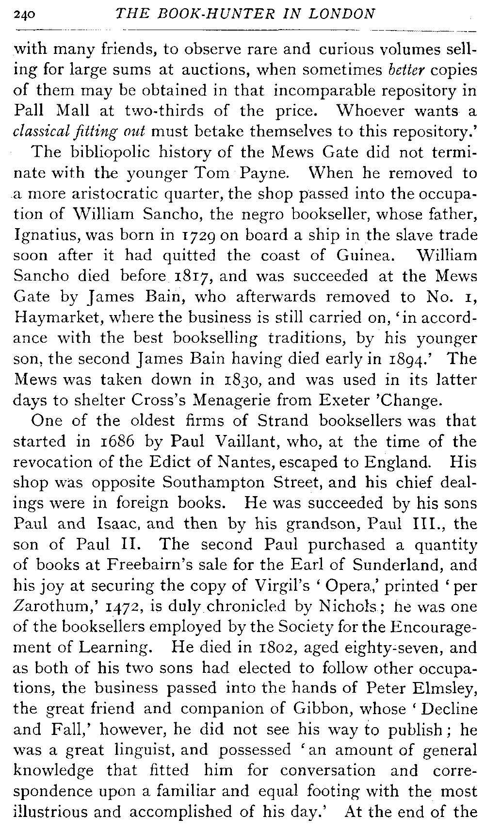 'The Book-hunter in London' is the outcome not only of material which has been accumulating for many years past, from published and unpublished sources, but also of a long and pleasant intercourse with the leading book-collectors and booksellers in London, not to mention a vigorous and constant prosecution of one of the most pleasant and instructive of hobbies. The author has freely availed himself of the information in the works of Dibdin, Nichols, and other writers on the subject, but their statements have been verified whenever possible, and acknowledgements have been made in the proper places to the authorities laid under contribution.