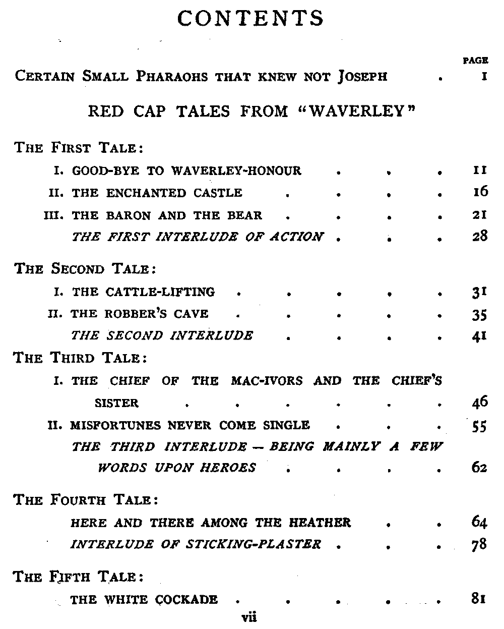 Now, since the first telling of these Red Cap Tales, the Scott shelf in the library has been taken by storm and escalade. It is permanently gap-toothed all along the line. Also there are nightly skirmishes, even to the laying on of hands, as to who shall sleep with Waverley under his pillow.