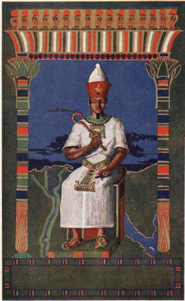 Now, Isis had a son named Horus, and when he[Pg 85] grew to manhood he challenged Set, fought with him, and defeated him. Then the gods all assembled, and gave judgment that Osiris was in the right, and Set in the wrong. They raised Osiris up from the dead, made him a god, and appointed him to be judge of all men after death. And then, not all at once, but gradually, the Egyptians came to believe that because Osiris died, and rose again from the dead, and lived for ever after death, therefore all those men who believed in Osiris would live again after death, and dwell for ever with Osiris. You see that in some respects the story is strangely like that of the death and resurrection of Jesus Christ.