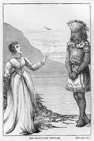 “Oh, save our brave friend,” she cried, as she pressed her lips to her husband’s, who immediately sprang back to the beach, and, listening not to Tecumah’s request to be allowed to die where he lay, he carried him, with the assistance of the Indians who still had strength to exert themselves, to the canoe.