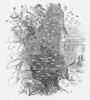 Again with dejected hearts they proceeded, the sea, as before, tranquil, the breeze propitious, and the weather mild and delightful. In a day or two more weeds were seen floating from east to west, but no birds were visible. The people again expressed their fears that they had passed between two islands; but after the lapse of another day the ships were visited by numberless birds, and various indications of land became more numerous. Full of hope, the seamen ascended the rigging, and were continually crying out that they saw land.