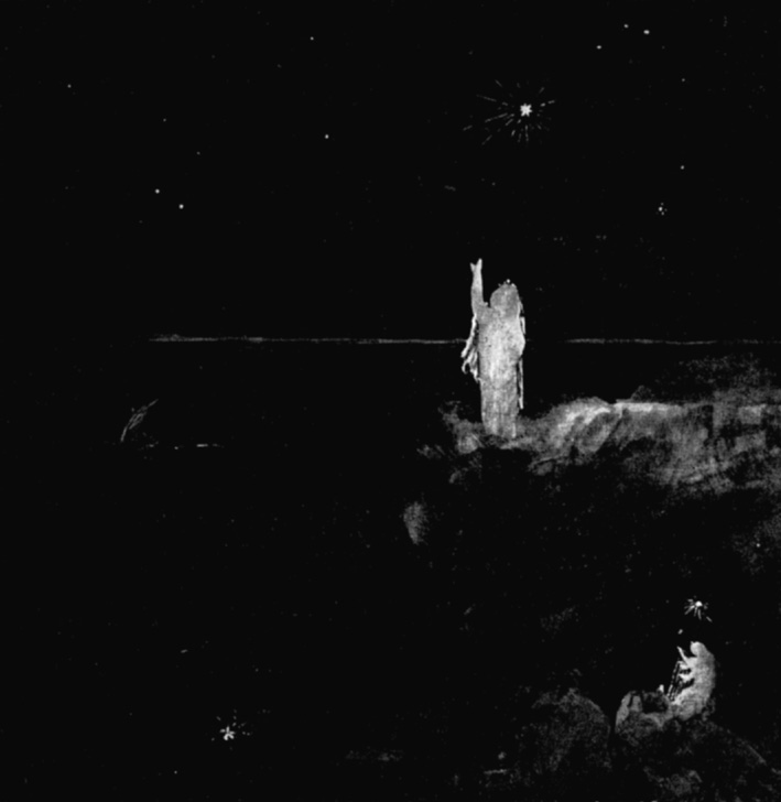 [73]The winds and the sea conspired, as it seemed, to urge the ship on her voyage, and the dwellers of the ocean pointed the way, watchful ever and untiring in their duty. Small as it was, and ill-found, Eline chose this ship for her return, and once again she came to the place where the temple had stood—she and that faithful one.