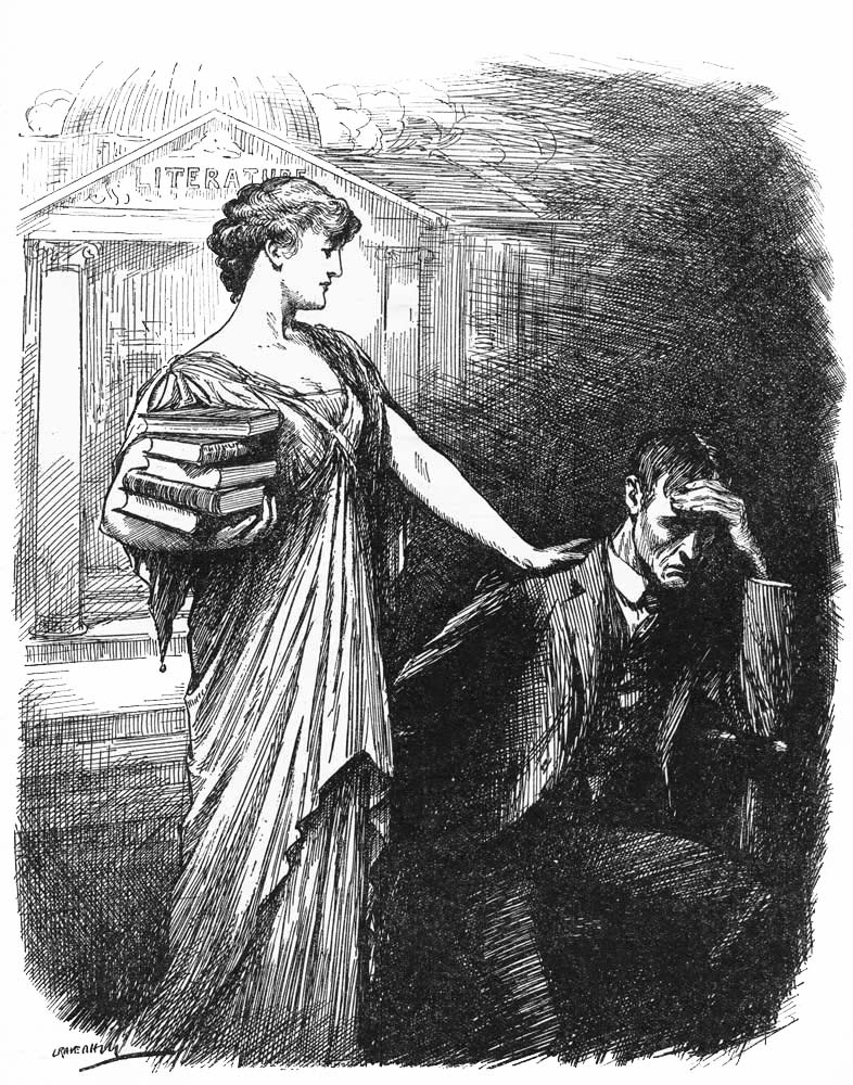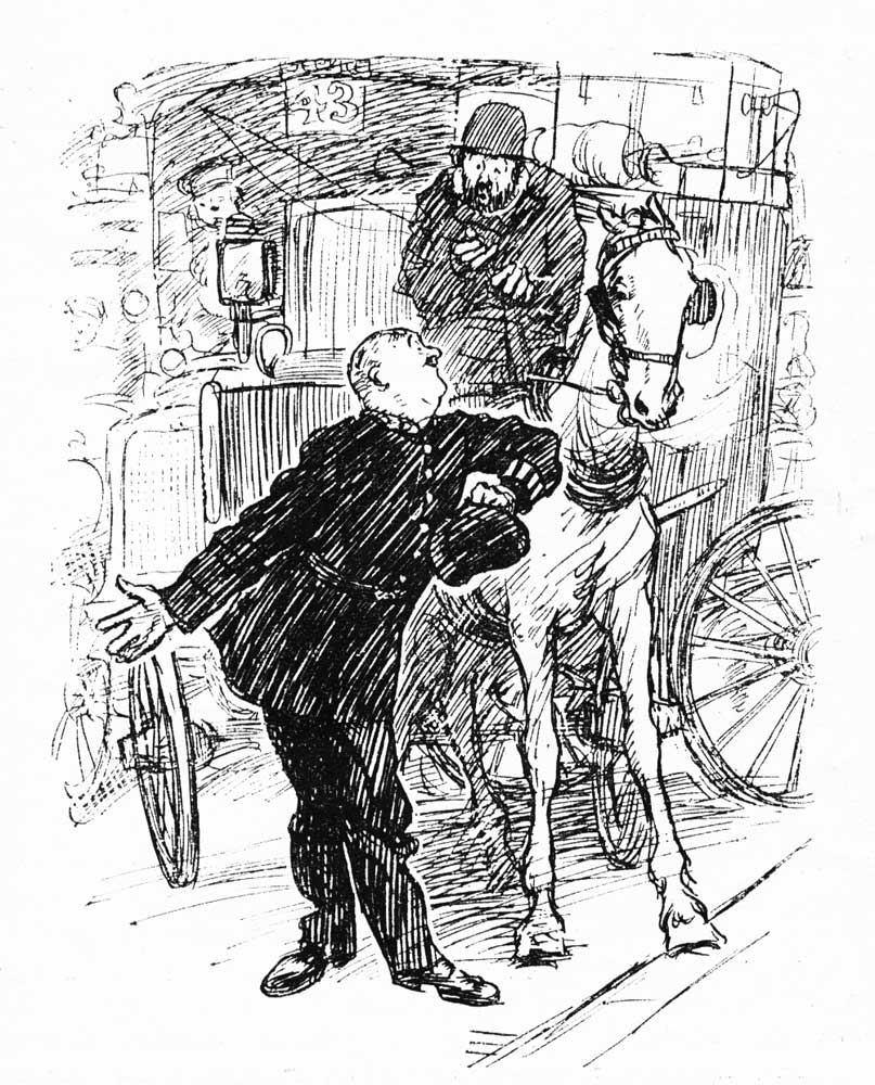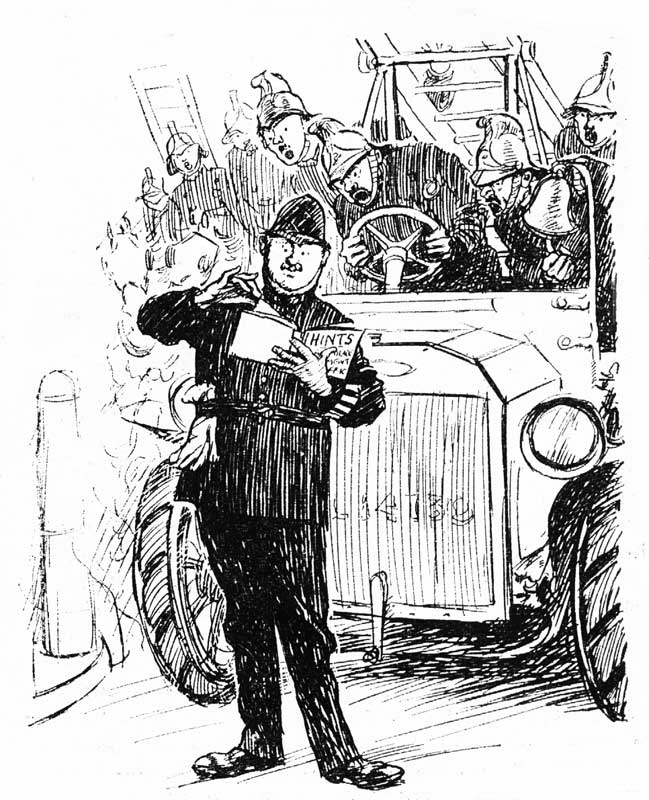 Everybody, of course, is aware that Professor Joff committed one of his notorious "howlers" when he derived "Carmelite"—in the street name—from "Cromwell's Heights." The latter, needless to say, must have been a deal nearer the South Kensington Museum than Whitefriars, famed for its sanctuary. Cromwell may have wandered in the meadows (if they still existed in his day) where the 6.30 News now leaps from its machines every afternoon about half-past five; he may even (as Plip and Johnstone surmise, in their ponderous tomes, Odd Corners in London and More and Odder Corners in London) have supped at the Pig and Mortarboard, which stood on what is now the site of the Ludgate Hill station booking-office (Plip, by-the-by, wrongly says not the booking-office, but the "bookstall," an amazing error in one usually so careful). But whatever else Cromwell did or did not do, he certainly never gave his name to any district further east than Knightsbridge.