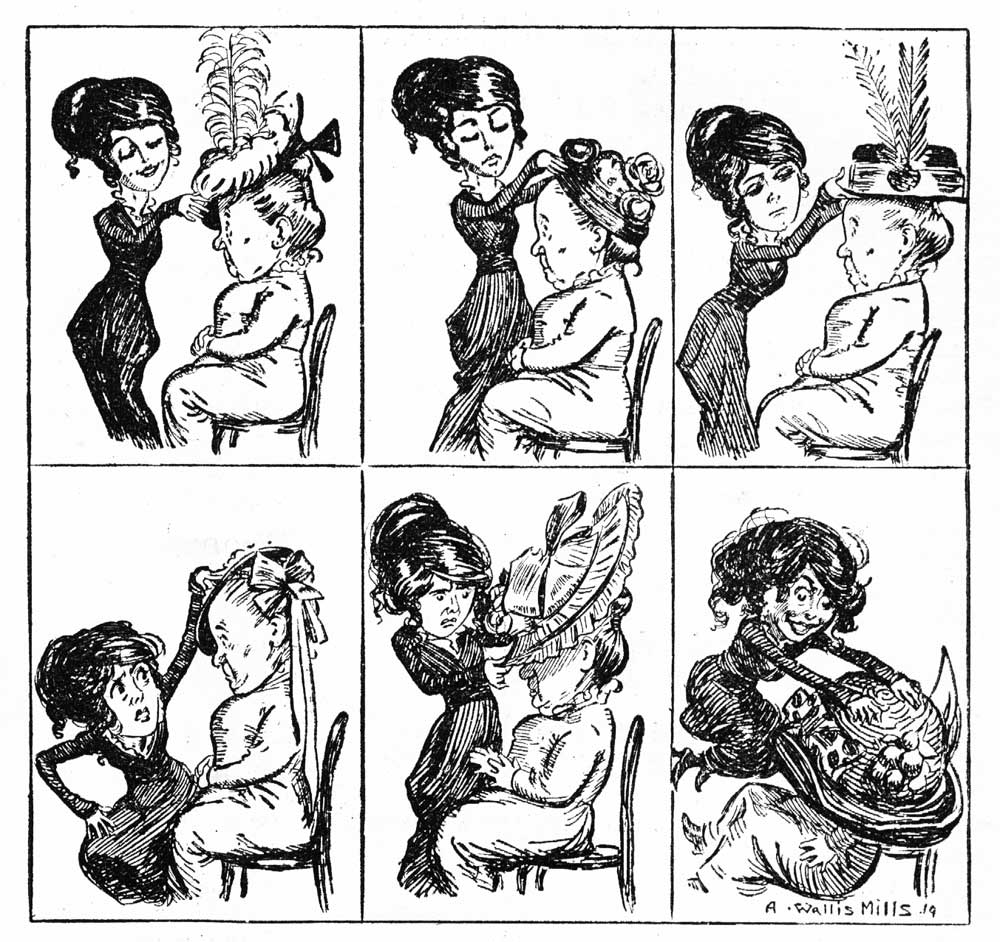 "No," she groaned; "it's even worse than those. It's all over my head."
