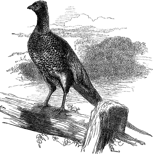 THE PHEASANT.This beautiful bird comes originally from the East, and takes its name from the river Phasis, in Colchis, Asia Minor, whence it was first brought to Europe by the Argonauts. The pheasant is one of the most beautiful of all fowls, and can only be rivalled by the peacock. The shifting hues upon his neck, and the brilliant scarlet and black around his head, strike every beholder with admiration. Pheasants are very good to eat, but sportsmen are not allowed to shoot them until the 1st of October, in order that they may have time to rear their young. In ancient times the pheasant was held in reverence by the heathen, and it was only on the most[82] solemn occasions that they were used as food, and then only by the emperors of Rome. There are no pheasants in America, and, on account of their short wings and heavy bodies, they never fly from one country to another. But they increase very rapidly in number, a single pair having been known to produce as many as 183 eggs in a season. The sportsman, however, takes care to keep their numbers within due limits. Their habit of squatting or sitting so close to the earth, has been supposed to be an instinctive act to save themselves from the attacks of the hawk, who is unable to master his prey, if large and strong, near the ground, where it could offer resistance. I have met with a story of a pheasant which proves that this bird is very bold and courageous. "A young lady walking alone a few miles from Stirling (in Scotland), observed a beautiful cock[83] pheasant perched on a stone by the road side. Instead of showing timidity at her approach, he flew down upon her, and, with spurs and beak, began a furious assault. Being closely pursued, and seeing no way of escape from the enraged bird, she adopted the only alternative that was left, namely, of seizing her adversary, whom she carried home, but soon afterwards released; on the door being opened, however, he went out without any sign of fear, and, with a deliberate step, paced backwards and forwards in front of the house, and manifested an inclination to join the fowls in the poultry yard. It should be remarked that the young lady, when attacked, wore a scarlet mantle, which probably excited the irritability of the pheasant, as it is well known to do that of the turkey-cock, and some other animals."[84]