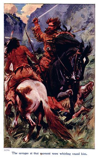 Although just emerging from boyhood, Louis the trapper was already a tall, strong, handsome man, and Mary felt flattered by his attentions. But when, a month afterwards, he boldly offered her his hand and fortune (which latter consisted of a trapper’s costume and a western rifle), she was taken aback and flatly refused him. Louis was hare-brained and passionate. He told her he would give her one day and a night to think of it. At the end of that time he came back and was again refused, for Mary West had no notion of being taken by storm in that fashion. But she trembled and grew pale on observing the storm of angry passion that gleamed from the young trapper’s eyes and caused his broad chest to heave violently. He did not speak. He did not even look at Mary—had he done so, years of sorrow and suffering might have been spared them both. He stood for one moment with his eyes fixed upon the ground—then he turned, sprang through the doorway, vaulted on his horse, and went off from her cottage door as an arrow leaps from a bow. The fences and ditches that lay in his way were no impediment. His powerful steed carried him over all and into the forest beyond, where he was quickly lost to view. Mary tried to resume her household occupations with a sigh. She did not believe he was gone. But he was!