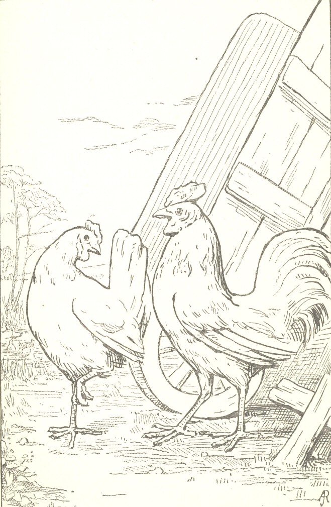 “On my word, ma’am,” said Gray Cock, “you do me injustice. But when a hen gives way to temper, ma’am, and no longer meets her husband with a smile—when she even pecks at him whom she is bound to honour and obey—”