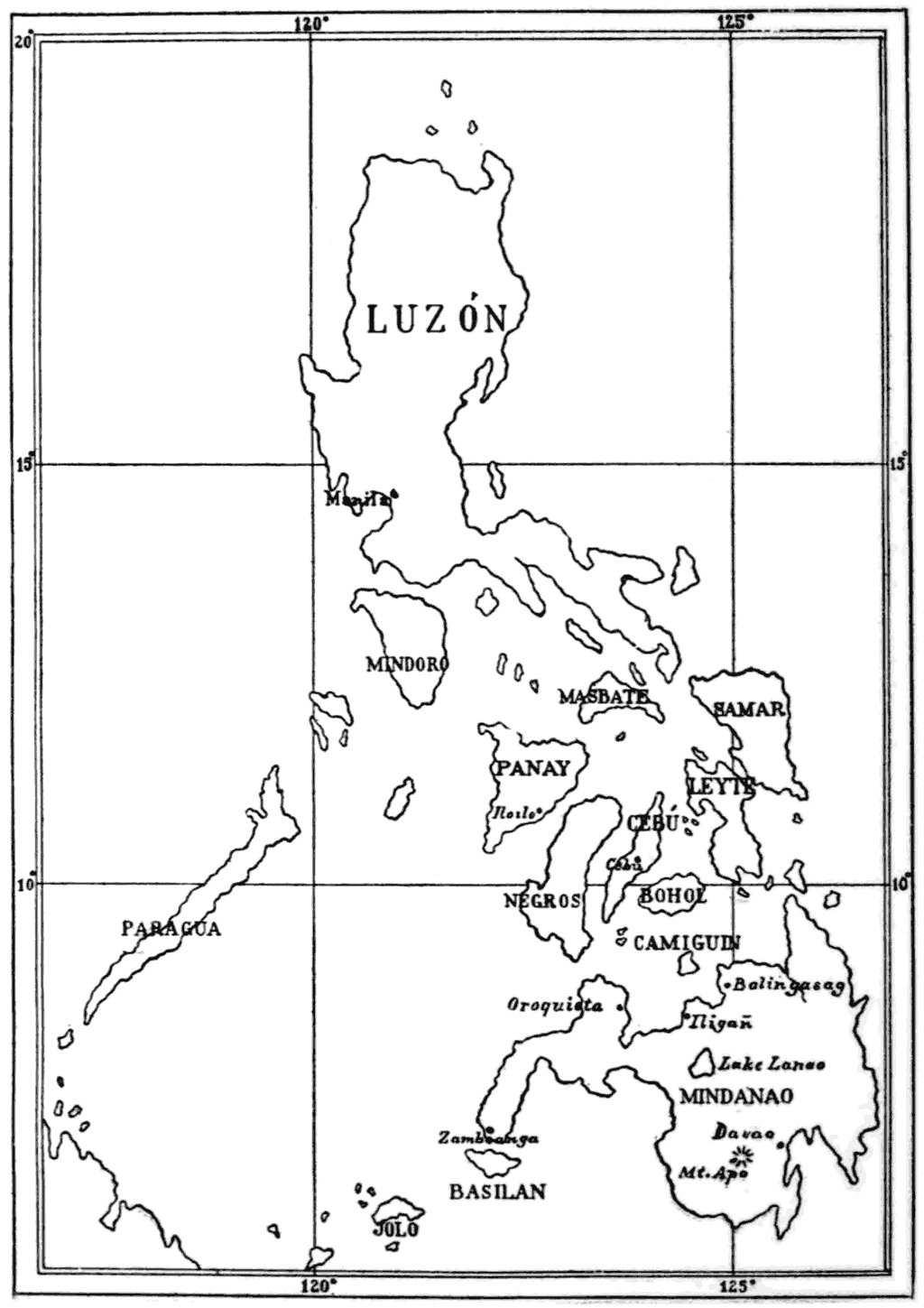 The following pages are the record of my own impressions and experiences in the Philippines. The few historical and geographical allusions made have been selected only as they were significant, explanatory, picturesque. A logical arrangement of the chapters will enable the reader to survey the islands as a great bird hovering above might do—will make the map of Filipinia “look like a postage-stamp.”