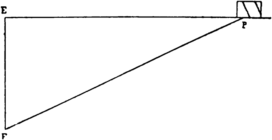 The method employed by him for the purpose is no less simple theoretically than that used for locating the epicentre. If the position of the latter (E) is known, one accurate measurement of the angle of emergence EPF, at any other point P would be sufficient to fix the depth of some point within the focus F (Fig. 11). Here, again, Mallet relied chiefly on fissures in walls that were fractured but not overthrown. In detail, these fissures are nearly always jagged or serrated, for they tend to follow the lines of joints rather than break through the solid stone, though they sometimes traverse bricks and mortar alike. But the general course of the fissures, he urged, would be at right angles to the wave-path, and their inclination to the vertical should be equal to the angle of emergence.