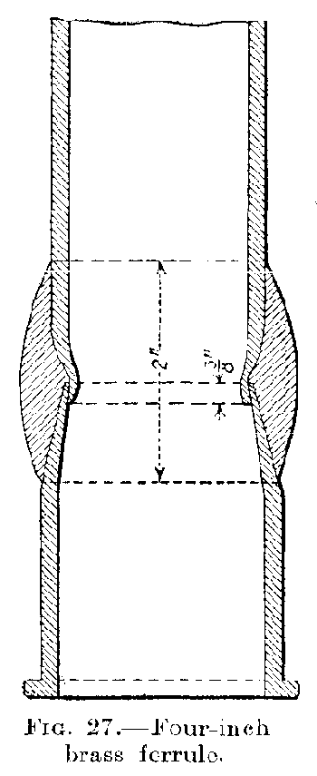 Brass ferrules must be best quality, extra heavy cast brass, not less than 4 inches long and 21⁄4, 31⁄2 and 41⁄2 inches in diameter and not less than the following weights: