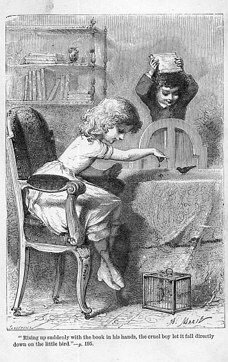 Norman then begged Fanny to come up to her room, and he there pointed out a hook which had been placed in the wall on which she might hang her bird-cage and reach it without difficulty, though too far off the ground for Trusty to frighten it, or for Kitty, the cat, even by exerting her utmost agility to reach it.