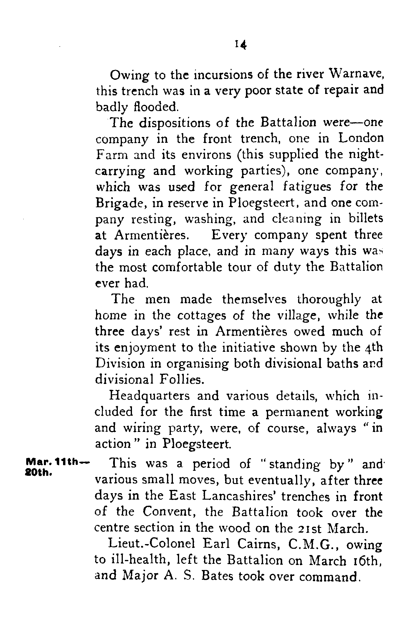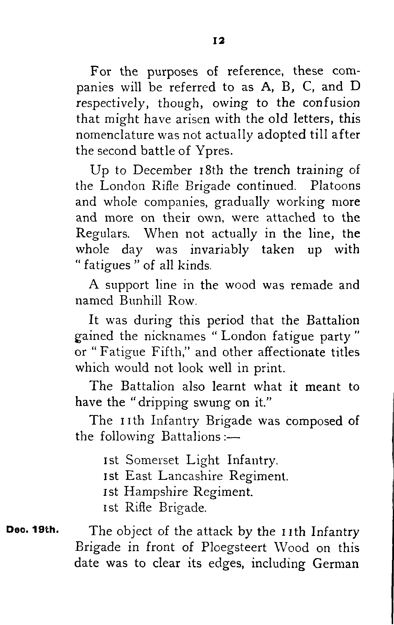 Ploegsteert.For the purposes of reference, these companies will be referred to as A, B, C, and D respectively, though, owing to the confusion that might have arisen with the old letters, this nomenclature was not actually adopted till after the second battle of Ypres.