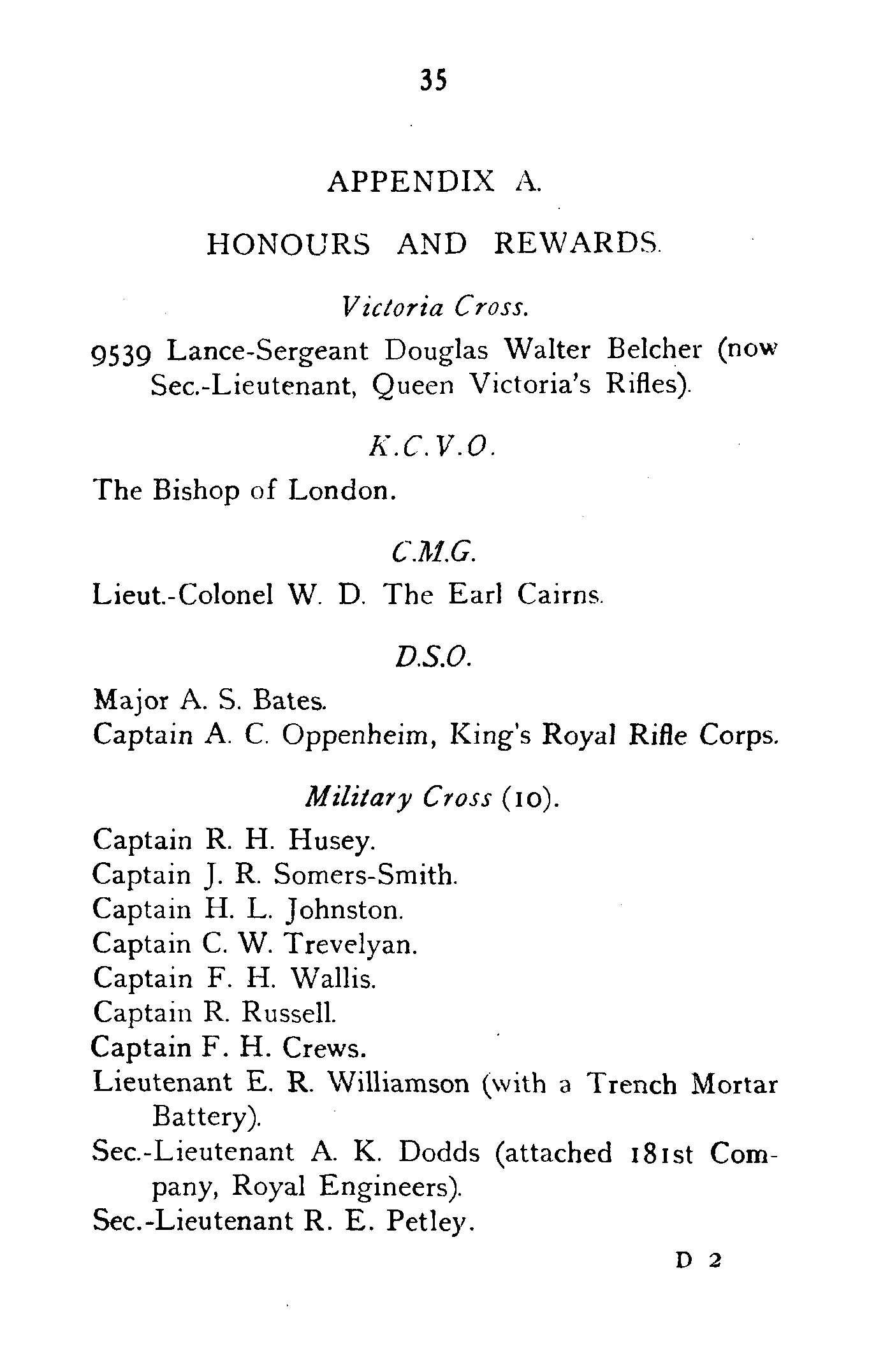 | H. C. Cholmondeley | 30/11/14 | 1915. |