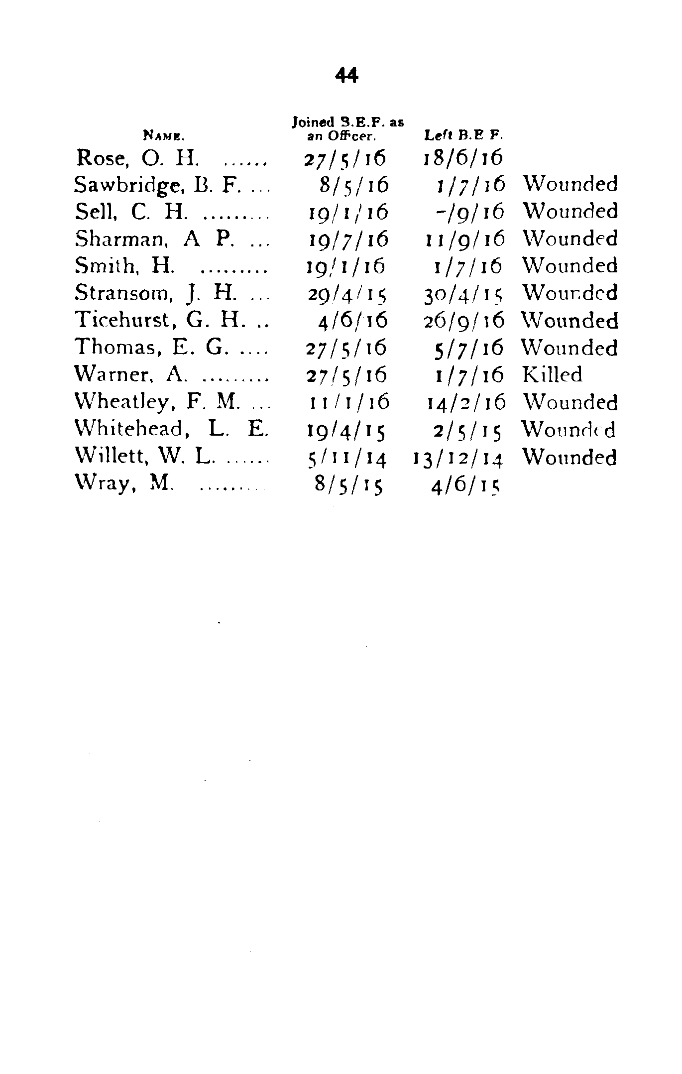 | Rose, O. H. | 27/5/16 | 18/6/16 | |