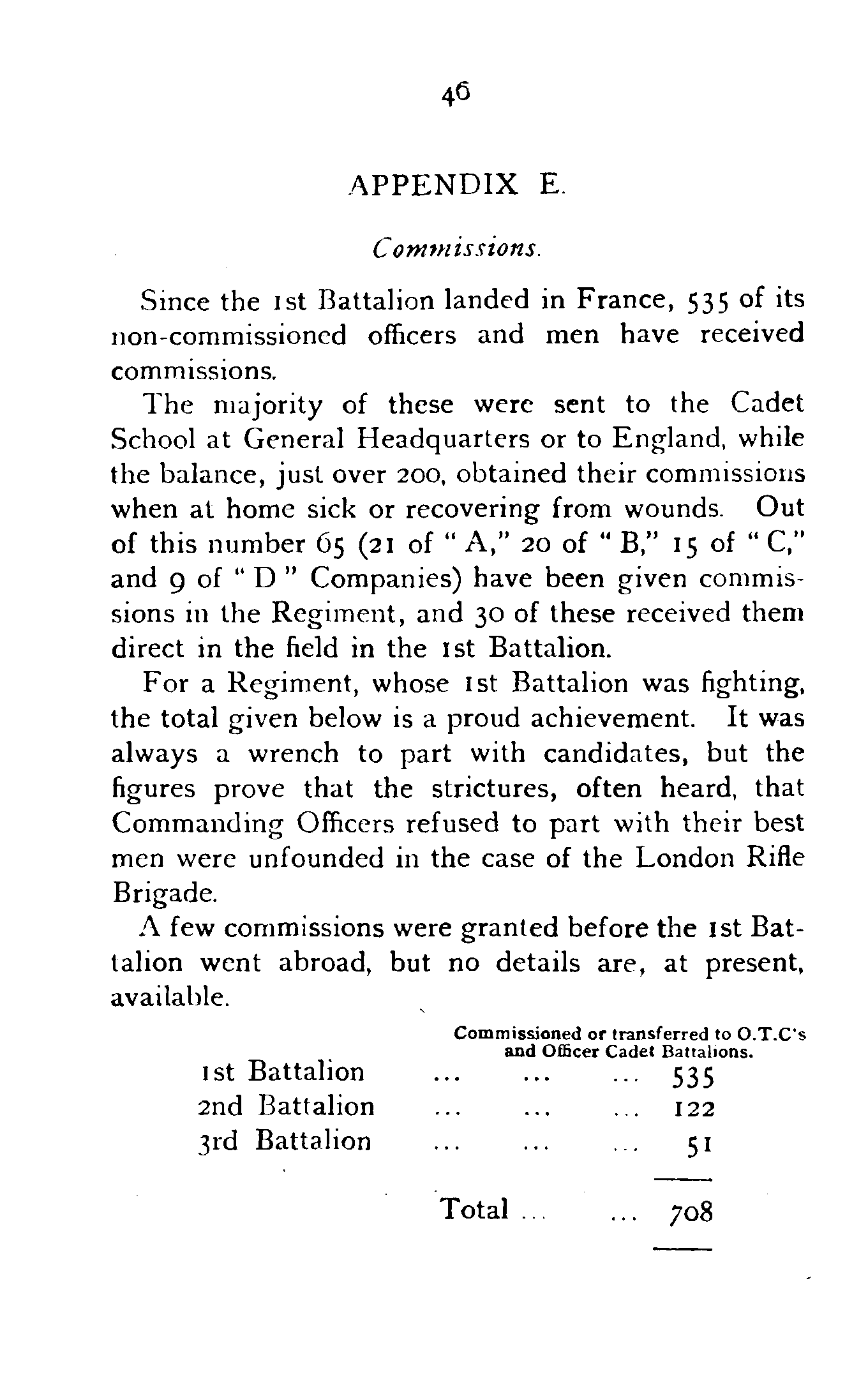 For a Regiment, whose 1st Battalion was fighting, the total given below is a proud achievement. It was always a wrench to part with candidates, but the figures prove that the strictures, often heard, that Commanding Officers refused to part with their best men were unfounded in the case of the London Rifle Brigade.