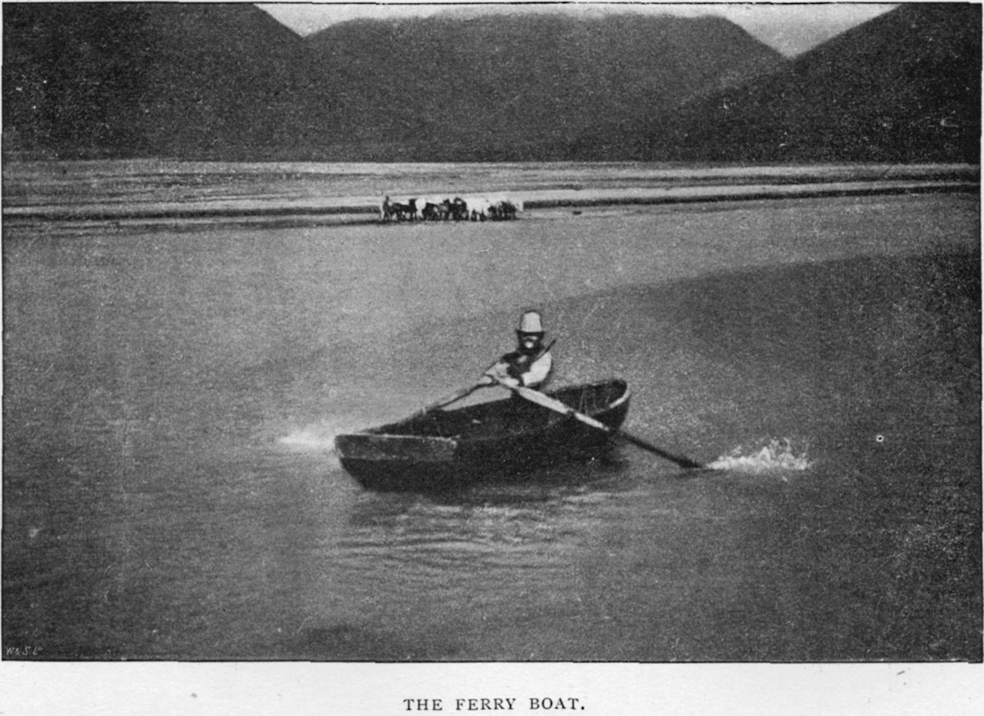 There was considerable fun getting the shaggy black retrievers on board, for they could not walk up a rope ladder, and were almost too big to carry.