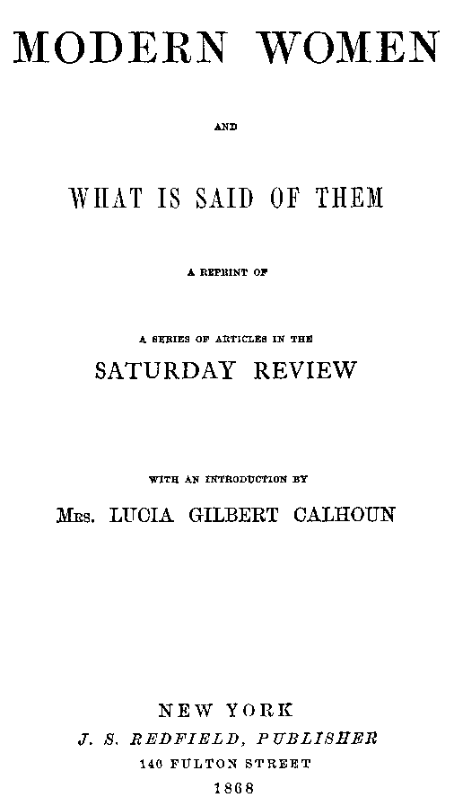Title: Modern women and what is said of them : a reprint of a series of articles in the Saturday Review (1868)