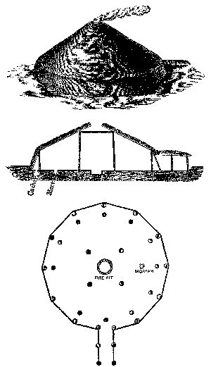 Let us now observe some characteristics of this extremely interesting middle period. Middle status of barbarism. It began, we see, in the eastern hemisphere with the domestication of other animals than the dog, and in the western hemisphere with cultivation by irrigation and the use of adobe-brick and stone for building. It also possessed another (p. 030) feature which distinguished it from earlier periods, in the materials of which its tools were made. In the periods of savagery hatchets and spear-heads were made of rudely chipped stones. In the lower period of barbarism the chipping became more and more skilful until it gave place to polishing. In the middle period tools were greatly multiplied, improved polishing gave sharp and accurate points and edges, and at last metals began to be used as materials preferable to stone. In America the metal used was copper, and in some spots where it was very accessible there were instances of its use by tribes not in other respects above the lower status of barbarism,—as for example, the "mound-builders." In the Old World the metal used was the alloy of copper and tin familiarly known as bronze, and in its working it called for a higher degree of intelligence than copper.