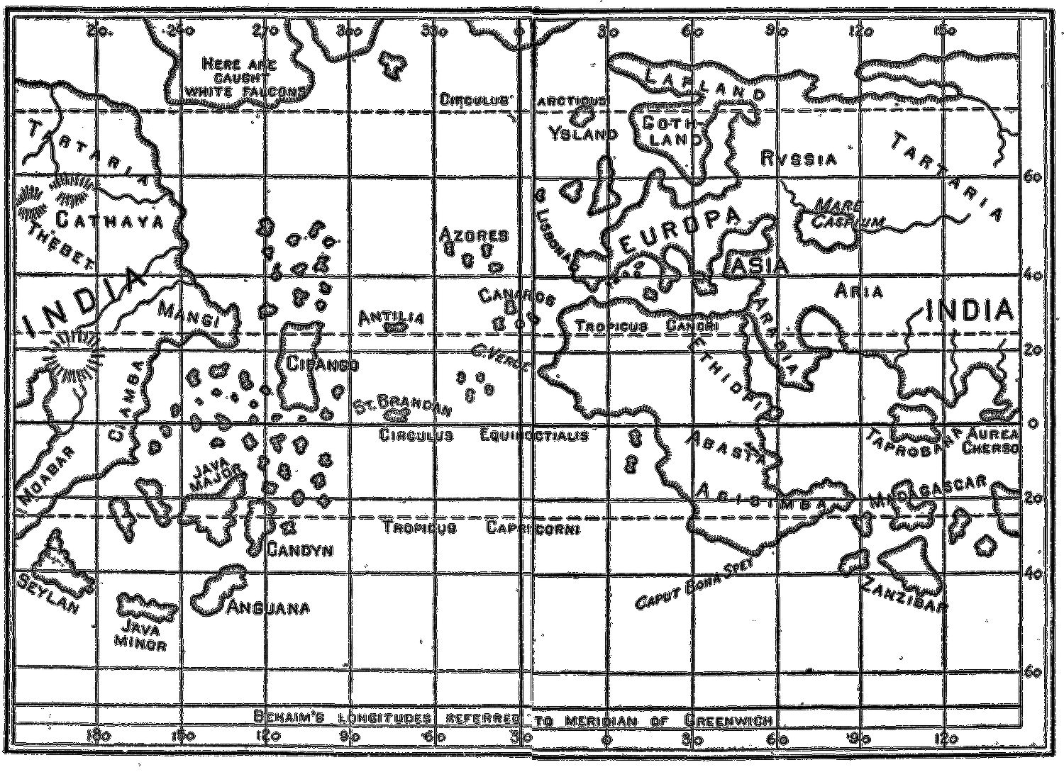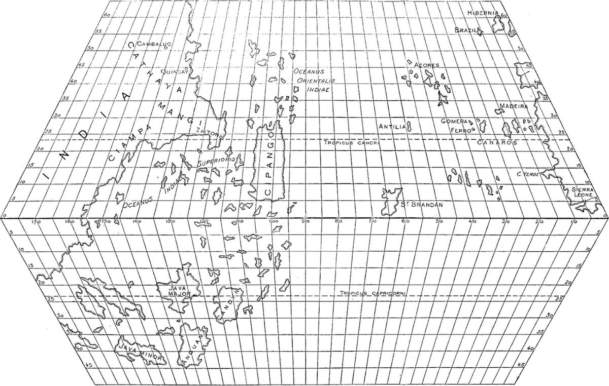 If, however, instead of his biographical estimate of Columbus, we consider Mr. Winsor's contributions toward a correct statement of the difficult geographical questions connected with the subject, we recognize at once the work of an acknowledged master in his chosen field. It is work, too, of the first order of importance. It would be hard to mention a subject on which so many reams of direful nonsense have been written as on the discovery of America; and the prolific source of so much folly has generally been what Mr. Freeman fitly calls "bondage to the modern map." In order to understand what the great mariners of the fifteenth and sixteenth centuries were trying to do, and what people supposed them to have done, one must begin by resolutely banishing the modern map from one's mind. The ancient map must take its place, but this must not be the ridiculous "Orbis Veteribus Notus," to be found in the ordinary classical atlas, which simply copies the outlines of countries with modern accuracy from the modern map, and then scatters ancient names over them! Such maps are worse than useless. In dealing with the discovery of America one must steadily keep before (p. xiii) one's mind the quaint notions of ancient geographers, especially Ptolemy and Mela, as portrayed upon such maps as are reproduced in the present volume. It was just these distorted and hazy notions that swayed the minds and guided the movements of the great discoverers, and went on reproducing themselves upon newly-made maps for a century or more after the time of Columbus. Without constant reference to these old maps one cannot begin to understand the circumstances of the discovery of America.