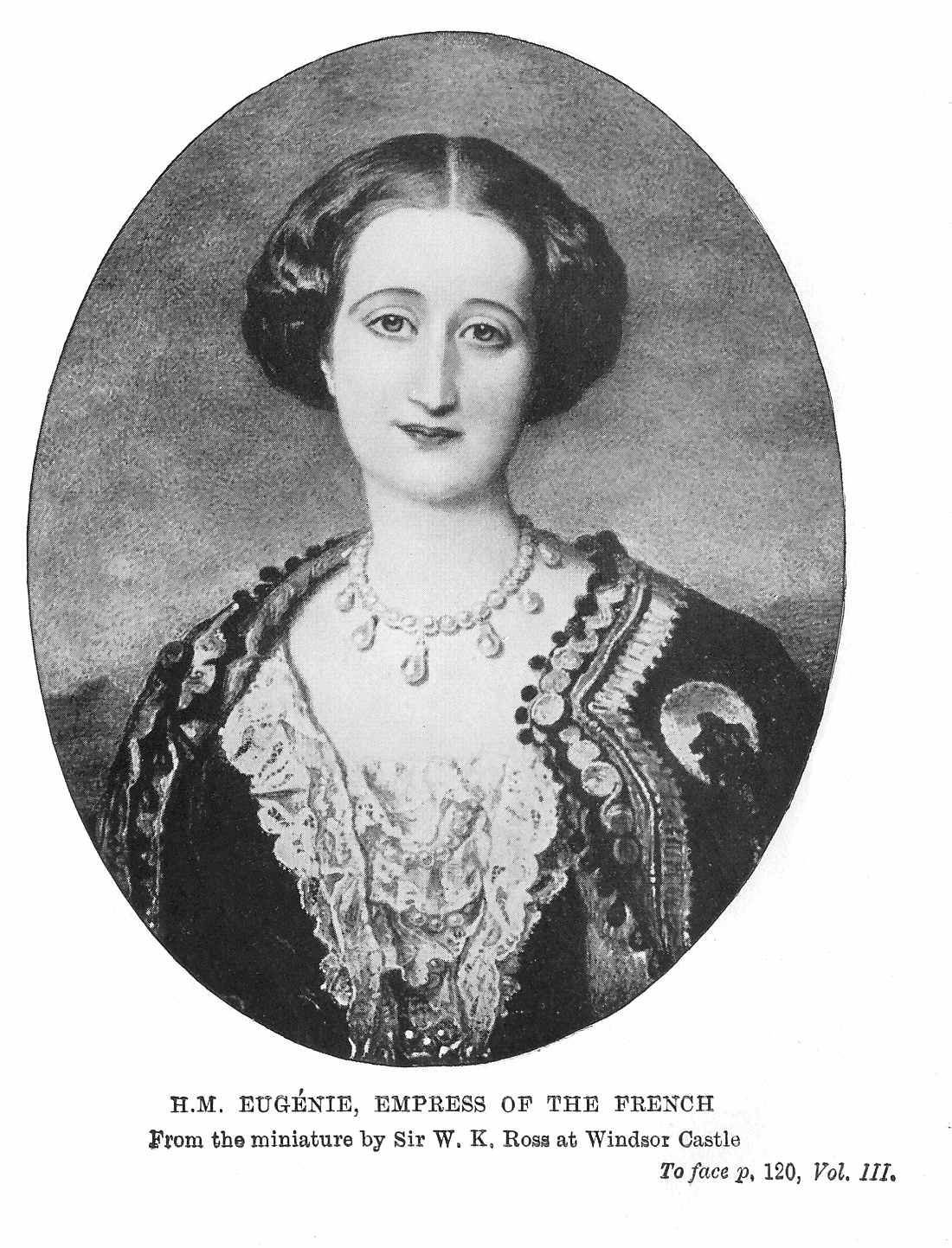 | H.M. Eugénie, Empress of the French. From a miniature by Sir W. K. Ross at Windsor Castle |
