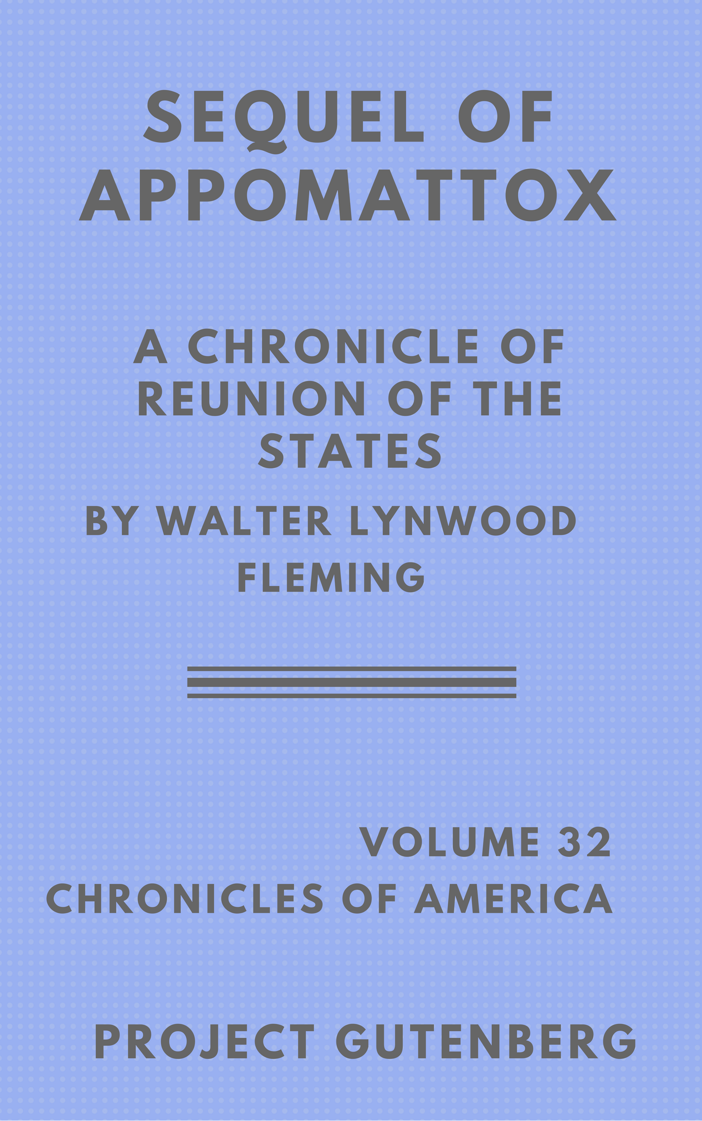 Welcome to Project Gutenberg's edition of Sequel to Appomattox by Walter Fleming in the Chronicles of America series. The images were courtesy of the Abraham Lincoln Edition on the internet archive from the University of Michigan. We also consulted the textbook edition from the Internet Archive to produce an e-book without images.