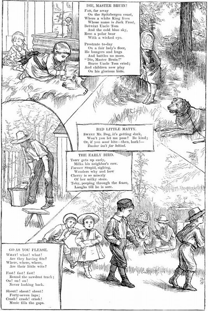 But there was one boy (a bright-eyed little fellow with brown curly hair) who took no part in the fun, but sat in a corner by himself, chalking curious figures on the wall, which he seemed to copy from the book in his other hand. Any one who had looked closely at these figures would have seen that they were letters—Russian letters—and that sometimes he would write a whole word at once, and then put the meaning opposite it in German. In fact, he was teaching himself the language of this new country that he had got into, and seemed to be pretty well on with it, for every now and then he would leave off writing, and read a page of his book without meeting a single word that he could not master.