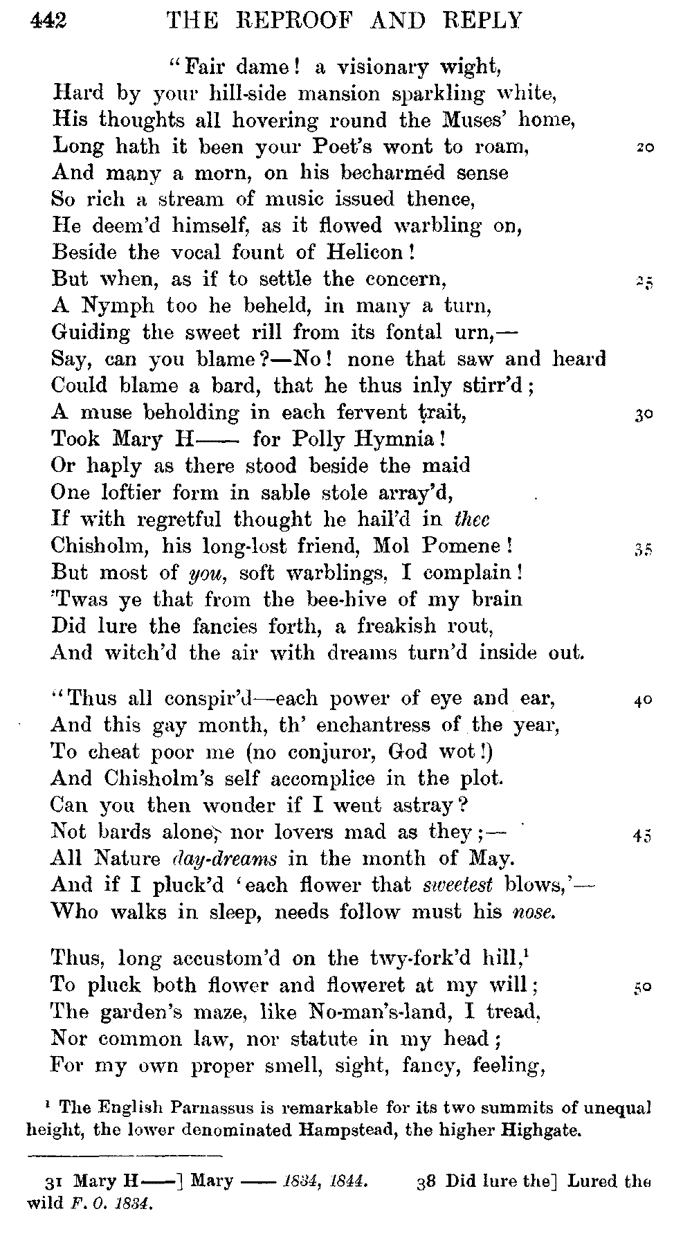 Pixies', lines 9, 11, 12, 15, 16, as printed in 1834, differ from the