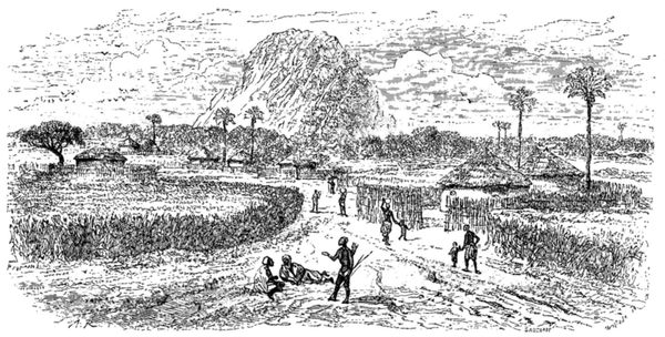 «En dépit des bruits et des tambours de guerre, nous ne cessons de traverser des plantations d'yams et de coton, de papayers, dont le feuillage se montre au-dessus des murailles; un horizon calme, un pays intéressant dépeuplé par la guerre. Nous nous arrêtons à Kola, siège d'un gouverneur qui dispose de soixante-dix mousquets; c'est un homme important dans la situation du pays, et qu'il est bon de visiter. J'y gagne une oie grasse, que me donne la sœur du chef, et qui apporte à mon régime un changement nécessaire. Plus loin, les trois fils du gouverneur de Zogirma viennent me saluer au nom de leur père. Cette dernière ville est plus considérable que je ne le supposais, et je suis étonné de la résidence du chef, dont le style rappelle l'architecture gothique. Zogirma peut avoir sept ou huit mille habitants, que les discordes civiles ont affamés; et c'est à grand'peine que je m'y procure du millet.