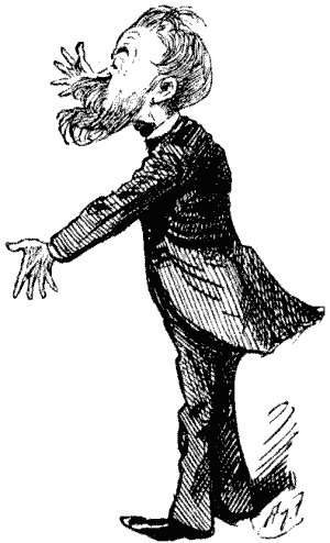 Tuesday.—Wilfrid Lawson sprang a mine to-night. House, as everyone knows, engaged for nearly fortnight in discussing question whether it should thank Judges for their services in connection with Parnell Commission. A desperate struggle finally resulted in decision to pass Vote of Thanks. Lawson wants to know whether Old Morality has conveyed the thanks to the Judges; and if so, what had they said in reply? Question put without notice. Rather[Pg 168] startles Old Morality. Fact is, never occurred to him that anything had to be done in supplement of passing Vote of Thanks. There it was; Judges might, in passing, call in and take it home with them; or it might be forwarded, at owner's risk, by Parcel-Post or Pickford's. Very awkward thing thus springing these questions on a Minister. Couldn't even, right off, say where the Vote of Thanks was. Gazed hopelessly at mass of papers on Clerk's table. Might probably be there. Perhaps not. Vote passed some days ago; desk cleared every morning. Old Morality moved restlessly on bench; looked picture of despair. Best thing to do, not to take notice of question; pretend not to hear it; but House laughing and cheering; all eyes bent on him; no escape. So, rising, holding on to table, putting on most diplomatic manner, and speaking in solemn tones, Old Morality said, "Mr. Speaker, Sir, it is no part of my duty to the Queen and country to convey to anybody a Resolution of this House."