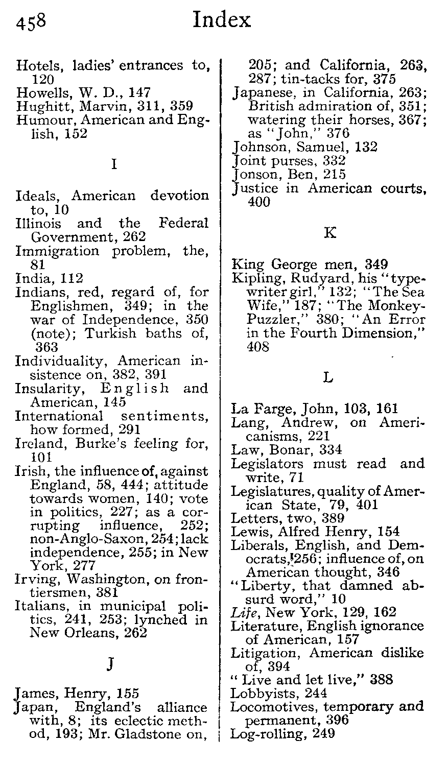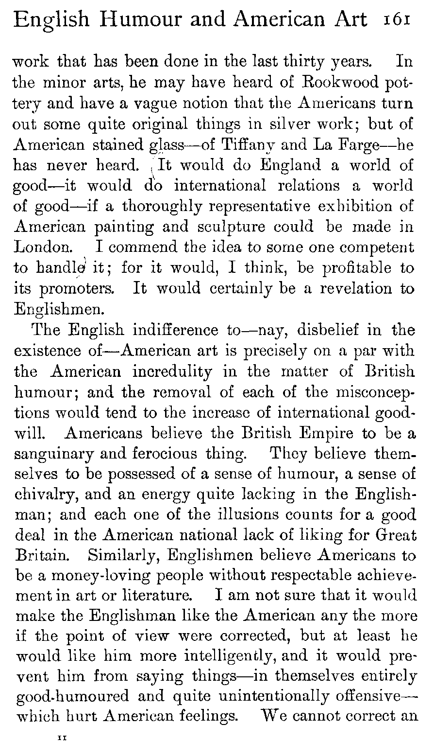 American Insularity—A Conkling Story—English Humour and American Critics—American Literature and English Critics—The American Novel in England—And American Art—Wanted, an American Exhibition[ix]—The Revolution in the American Point of View—"Raining in London"—Domestic and Imported Goods. |