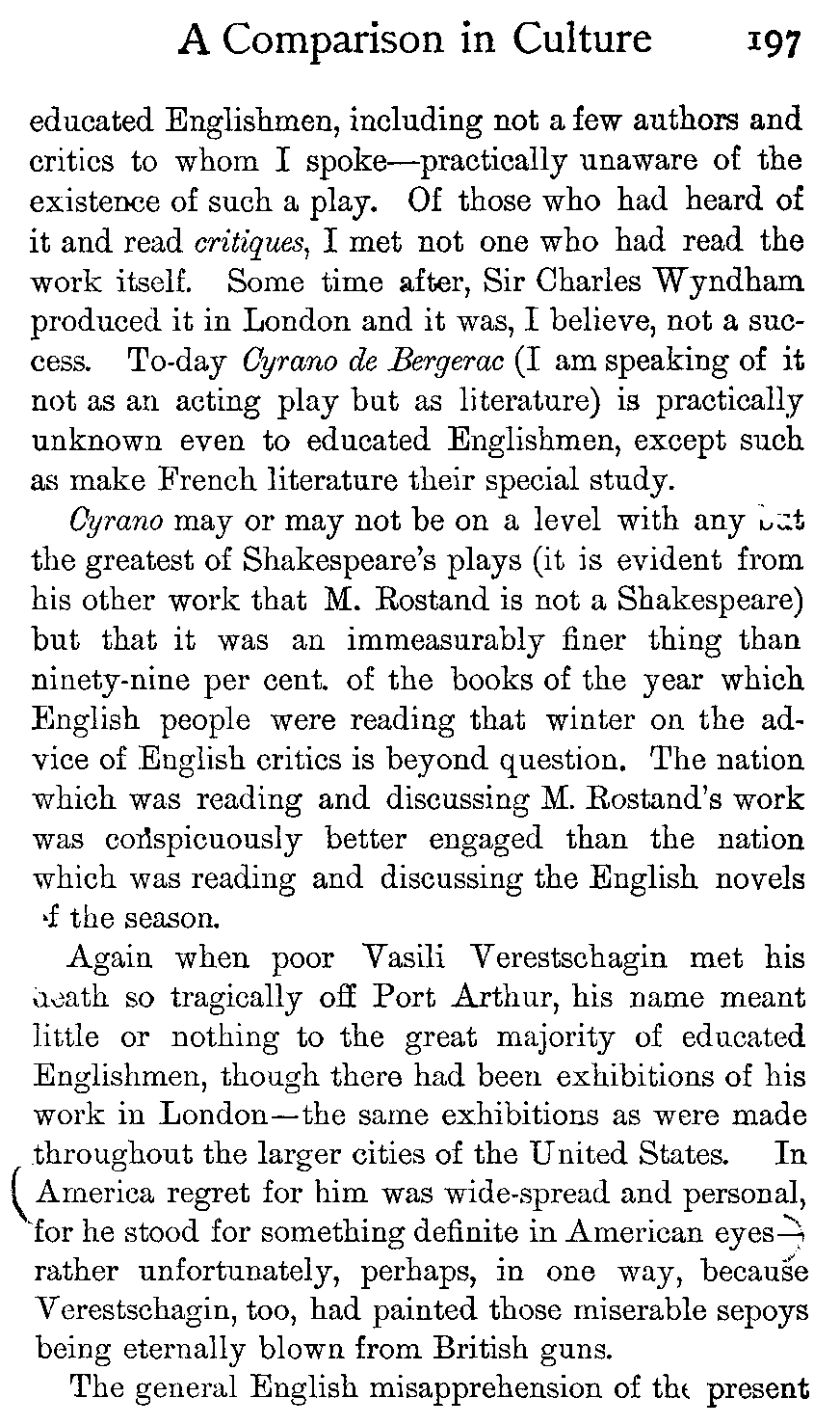 The Advantage of Youth—Japanese Eclecticism and American—The Craving for the Best—Cyrano de Bergerac—Verestschagin—Culture by Paroxysms—Mr. Gladstone and the Japanese—Anglo-Saxon Crichtons—Americans as Linguists—England's Past and America's Future—Americanisms in Speech—Why They are Disappearing in America—And Appearing in England—The Press and the Copyright Laws—A Look into the Future. |