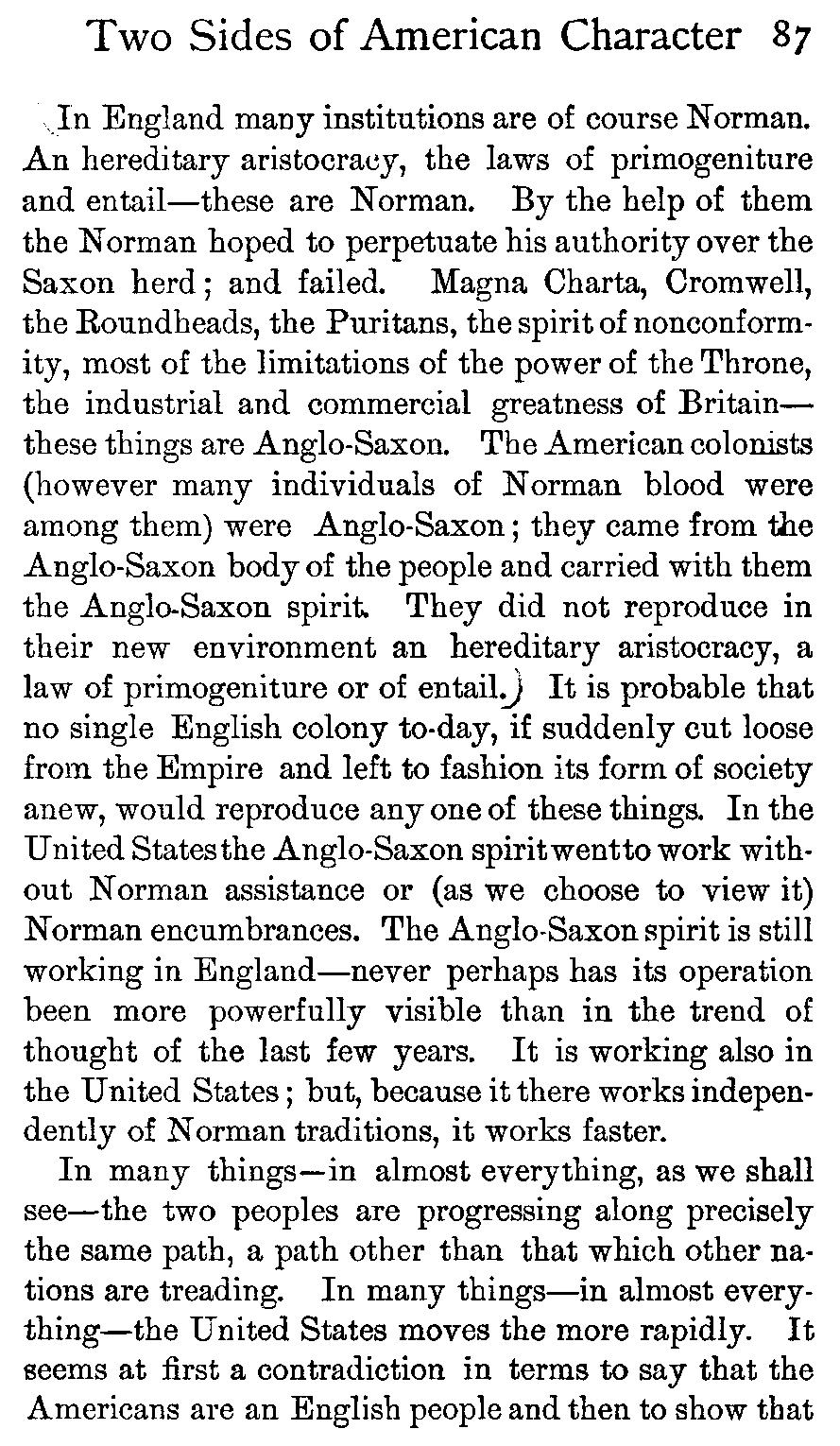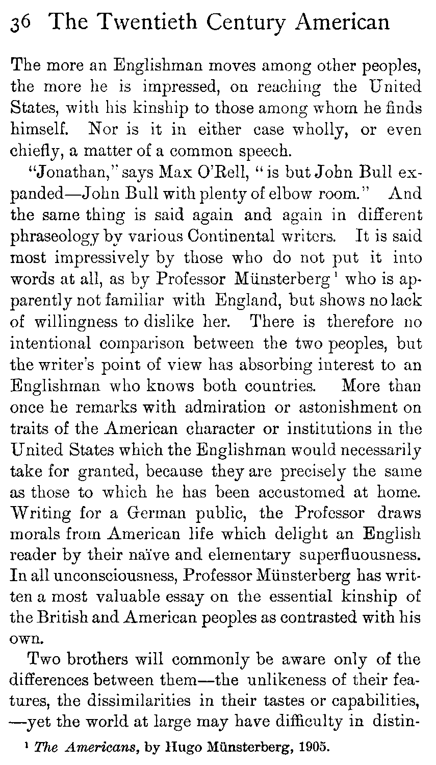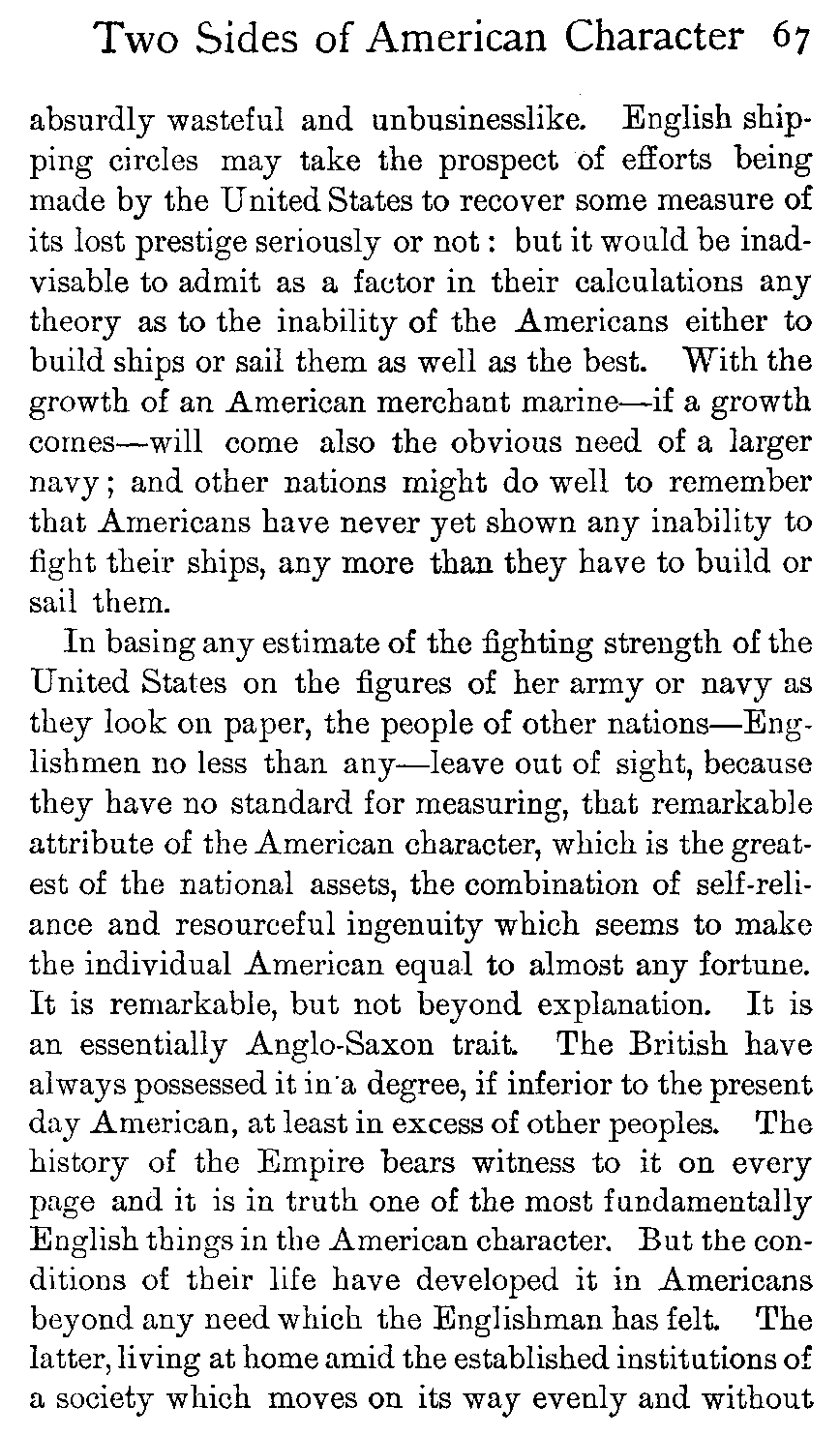 It is in the presence of such a remark, seriously made by so excellently capable a foreigner, that the Englishman and American ought to be able to shake hands and realise how much of a kin they are and how far removed from some other peoples.