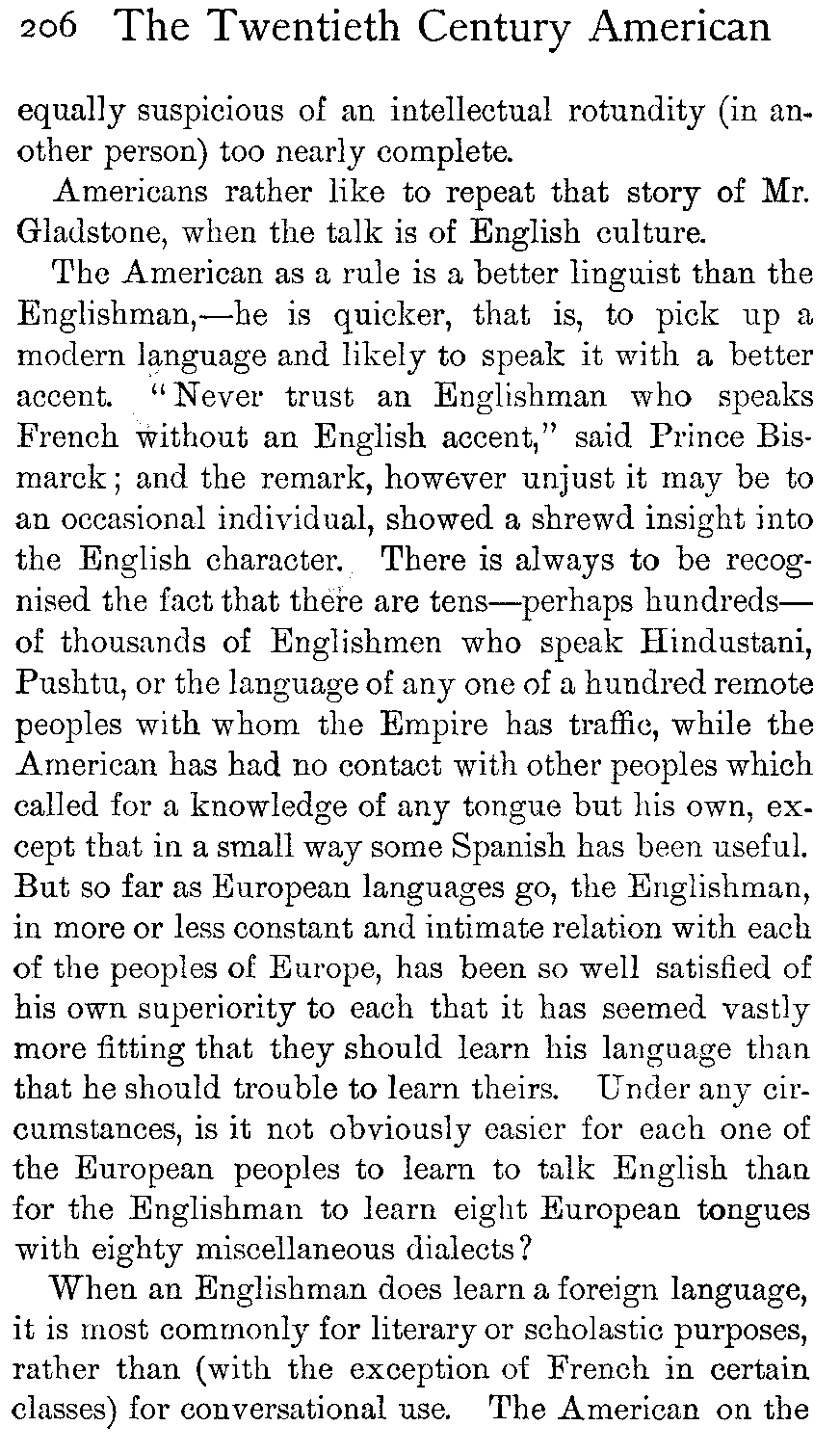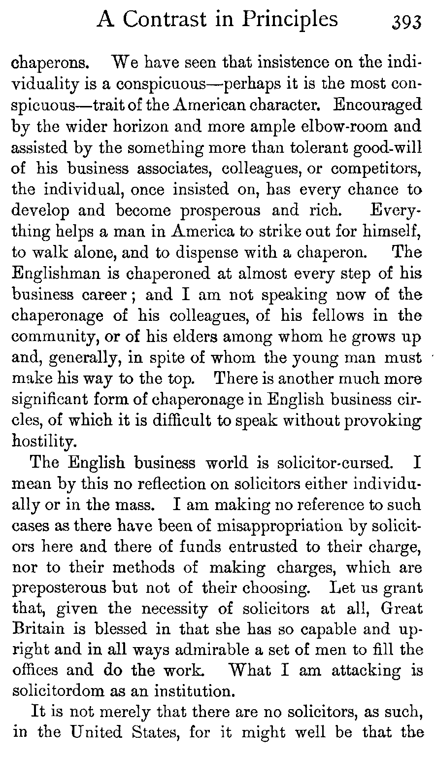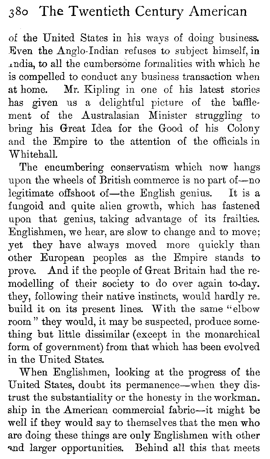 It is in the presence of such a remark, seriously made by so excellently capable a foreigner, that the Englishman and American ought to be able to shake hands and realise how much of a kin they are and how far removed from some other peoples.
