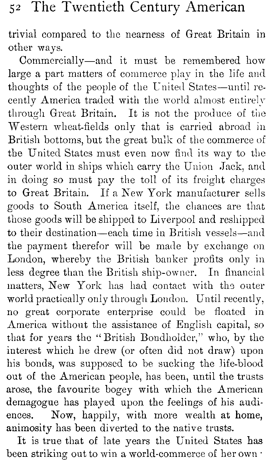 The Commercial Power of the United States—British Workmanship—Tin-tacks and Conservatism—A Prophetic Frenchman—Imperialism in Trade—The Anglo-Saxon Spirit—About Chaperons—"Insist upon Thyself"—English and American Banks—Dealing in Futures—Dog Eat Dog—Two Letters—Commercial Octopods—Trusts in America and England—The Standard Oil Company—And Solicitors—Legal Chaperons—The Sanctity of Stamped Paper—Conclusions—Do "Honest" Traders Exist? |