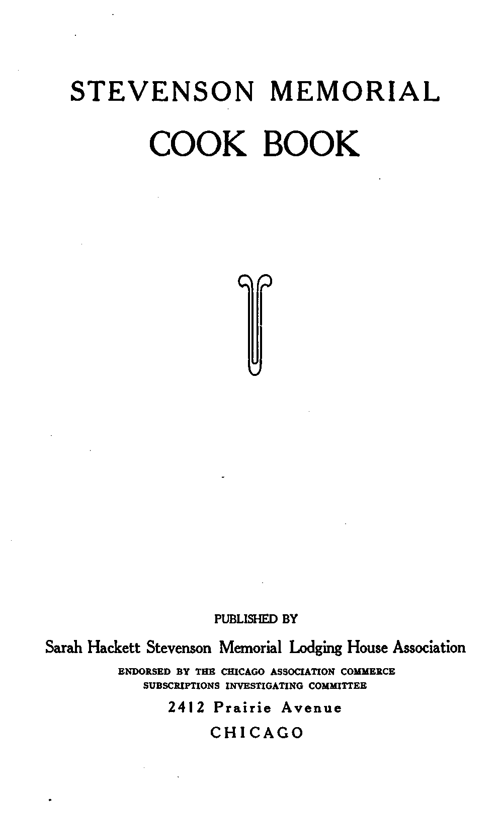 Title: Stevenson Memorial Cook Book