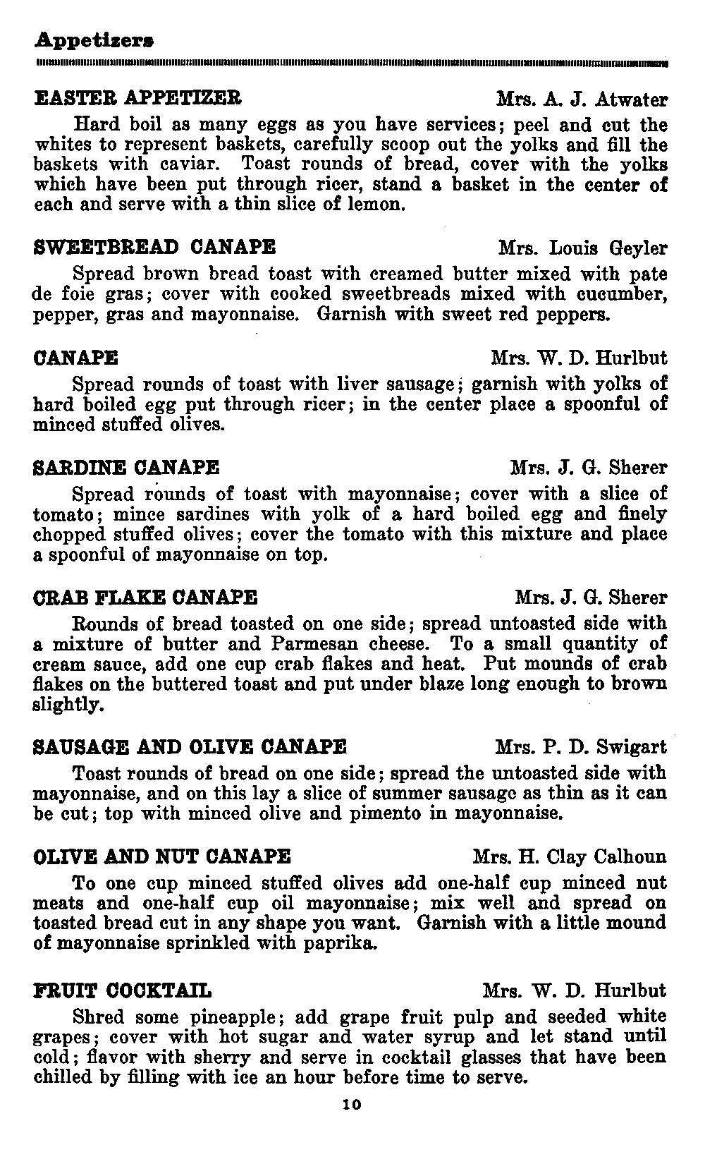 Lightly toast circles of bread, cut out with biscuit cutter, one-half inch thick. Cover each circle with a slice of tomato. Sprinkle with salt and pepper. Cover tomato with layer of caviar, garnishing edge with finely cut white of hard boiled egg. Instead of caviar, the tiny white onions (bottled) or yolk of egg finely chopped may be substituted. Serve on plate with fancy paper doily.