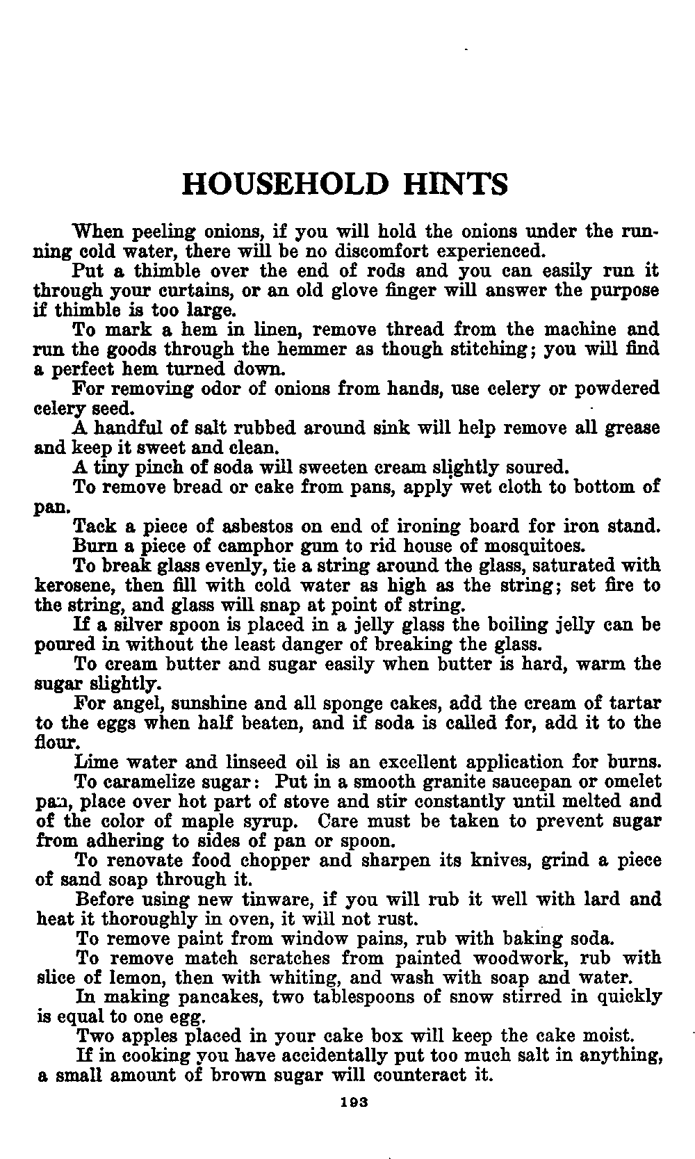 | HOUSEHOLD HINTS | 193 |
