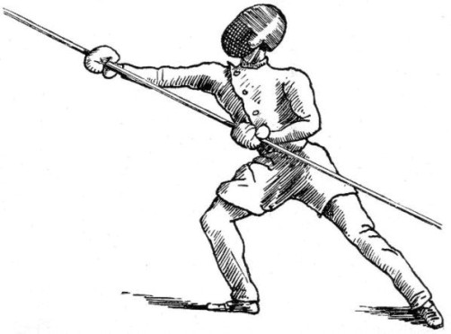 Thus we can imagine that the birth of quarter-staff play—not much play about it in those days—was a very simple affair; and we recognize in it the origin and foundation of all the sword exercises, and all the games in which single-stick, lance, and bayonet play a prominent part.