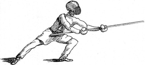 This extended range of work will give you a wonderful general capability for adapting yourself at a moment’s notice to any weapon chance may place in your hands:[Pg 109] the leg of an old chair, the joint of a fishing rod, or the common or garden spade; any of these may be used with great effect by an accomplished all-round swordsman.