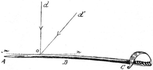 Similarly the guard c´d´ answers the purpose as far as cuts 4 to 1, 6 to 5, and 2 to 3 are concerned, but fails to ward off cut 7 to 0; and the same remarks apply to the other side of the target, where ab and a´b´ represent the staff.