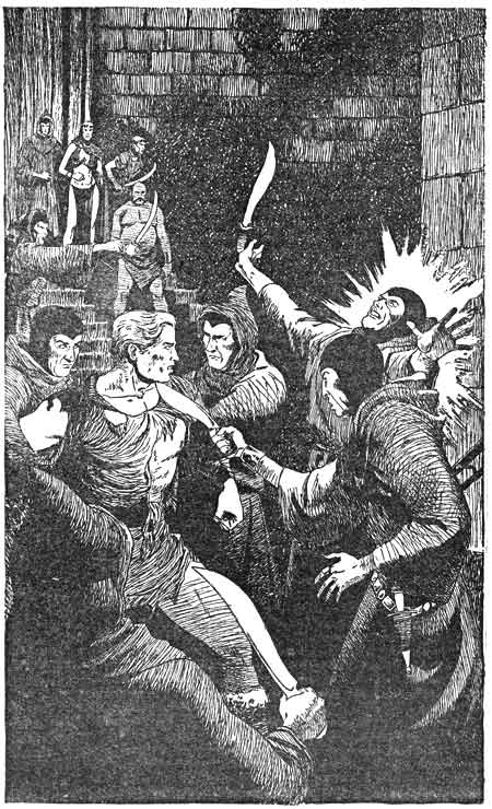 The priests came, two of them, bearing torches. Knives flashed as Ra-sed sprang, but he wrenched the blade from the hand of the first, buried it in the throat of the second. The man fell with a cry, but a stunning blow from behind sent Ra-sed sprawling across the fallen body. The other priest was on him, choking out his life.