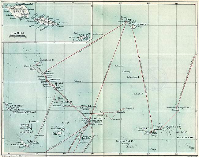 A MAP TO ILLUSTRATE R. L. STEVENSON'S LIFE IN THE SOUTH SEAS (Click to enlarge)