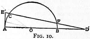 The circle was undoubtedly known to the early civilizations, its simplicity specially recommending it as an object for study. Euclid defines it (Book I. def. 15) as a “plane figure enclosed by one line, all the straight lines drawn to which from one point within the figure are equal to one another.” In the succeeding three definitions the centre, diameter and the semicircle are defined, while the third postulate of the same book demands the possibility of describing a circle for every “centre” and “distance.” Having employed the circle for the construction and demonstration of several propositions in Books I. and II. Euclid devotes his third book entirely to theorems and problems relating to the circle, and certain lines and angles, which he defines in introducing the propositions. The fourth book deals with the circle in its relations to inscribed and circumscribed triangles, quadrilaterals and regular polygons. Reference should be made to the article Geometry: Euclidean, for a detailed summary of the Euclidean treatment, and the elementary properties of the circle.