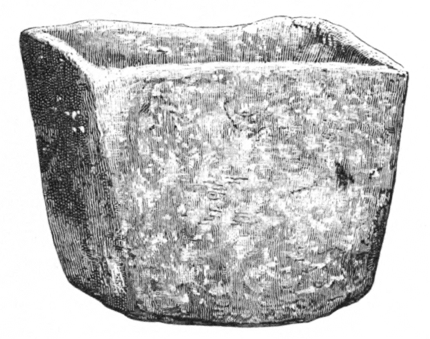 The aperture is ten and a half inches in diameter, and the height nine and one-half inches. The form is full above and somewhat conical below. The walls are thin and even and the surface well polished.