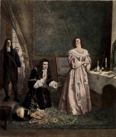 She was just twenty years of age when she completely turned the heads of the Dublin theatre-goers by the magnificence of her impersonation of Sir Harry Wildare in The Constant Couple. Her first appearance in London was not at the behest of her art, but, unfortunately, as a result of the arts of an admirer to whose addresses she had given [pg 422] some favor, and who led her to go to the English metropolis with him under promise of marriage. This regrettable circumstance was soon followed by her repudiation of the man on finding out his real character. She was not long off the stage, and in 1740 the playbills announced the first appearance of Miss Woffington in England. She drew large houses, and greatly widened her reputation as a leading actress of her time. To give the plays in which she took principal parts during her first London season would be to enumerate the best productions of the English stage at that time. It is said of her that before the season was half over, Miss Woffington had become the fashion. Among the many swains who followed in her wake and indited to her amorous missives and verses was Garrick. He pursued his lovemaking with all seriousness, and made his assault not solely upon the heart of the butterfly beauty, but upon her mind as well. He saw that beneath all the audacities of her mind and irregularities of life there was a noble nature, which the circumstances of her birth and training had never permitted true expression. His intentions were entirely honorable, but whenever the subject of marriage was broached by him she managed to switch off the conversation to a lighter subject. Her coquettishness would not permit her to take seriously the addresses of the man whom she doubtless greatly admired and loved. When she was regarded by everyone else as without a moral equivalent for her artistic temperament, Garrick steadfastly refused to regard her simply as a vain, flighty, and vacillating person. He was rewarded by being the only man whom she ever seriously thought of marrying.