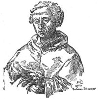 But before I deal with "La Childebert," I must say a few words about Bouginier, who, contrary to my expectations, owed his fame solely to his proboscis. He utterly disappeared (p. 004) from the artistic horizon in a few years, but his features still live in the memory of those who knew him through a statuette in terra cotta modelled by Dantan the younger. During the reign of Louis-Philippe, Dantan took to that branch of art as a relaxation from his more serious work; he finally abandoned it after he had made Madame Malibran burst into tears, instead of making her laugh, as he intended, at her own caricature. Those curious in such matters may see Bouginier's presentment in a medallion on the frontispiece of the Passage du Caire, amidst the Egyptian divinities and sphinxes. As a matter of course, the spectator asks himself why this modern countenance should find itself in such incongruous company, and he comes almost naturally to the conclusion that Bouginier was the owner, or perhaps the architect, of this arcade, almost exclusively tenanted—until very recently—by lithographers, printers, etc. The conclusion, however, would be an erroneous one. Bouginier, as far as is known, never had any property in Paris or elsewhere; least of all was he vain enough to perpetuate his own features in that manner, even if he had had an opportunity, but he had not; seeing that he was not an architect, but simply a painter, of no great talents certainly, but, withal, modest and sensible, and as such opposed to, or at any rate not sharing, the crazes of mediævalism, romanticism, and other isms in which the young painters of that day indulged, and which they thought fit to emphasize in public and among one another by eccentricities of costume and language, supposed to be in harmony with the periods they had adopted for illustration. This absence of enthusiasm one way or the other aroused the ire of his fellow-lodgers at the "Childebert," and one of them, whose pencil was more deft at that kind of work than those of the others, executed their vengeance, and drew Bouginier's picture on the "fag end" of a dead wall in the vicinity of the Church of St. Germain-des-Prés. The success was instantaneous and positively overwhelming, though truth compels one to state that this was the only flash of genius that illumined that young fellow's career. His name was Fourreau, and one looks in vain for his name in the biographical dictionaries or encyclopedias of artists. Fate has even been more cruel to him than to his model.