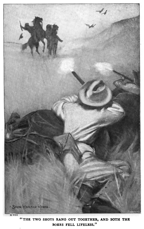 The lads had their rifles fixed upon them, the two shots rang out together, both the Boers fell lifeless from the saddle, and the Dutch horses dashed back along the track by which they had come.