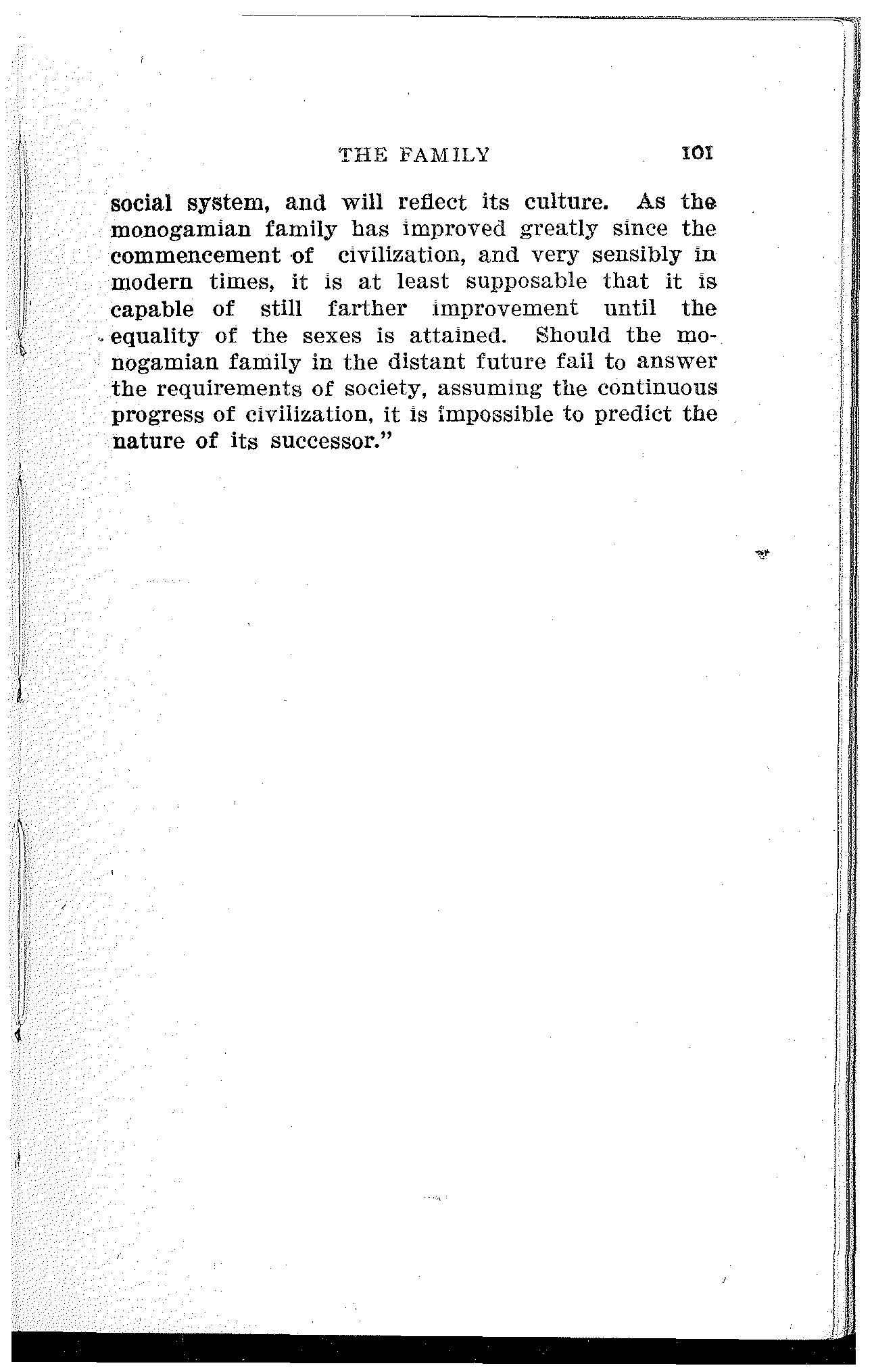 Morgan was the first to make an attempt at introducing a logical order into the history of primeval society. Until considerably more material is obtained, no further changes will be necessary and his arrangement will surely remain in force.