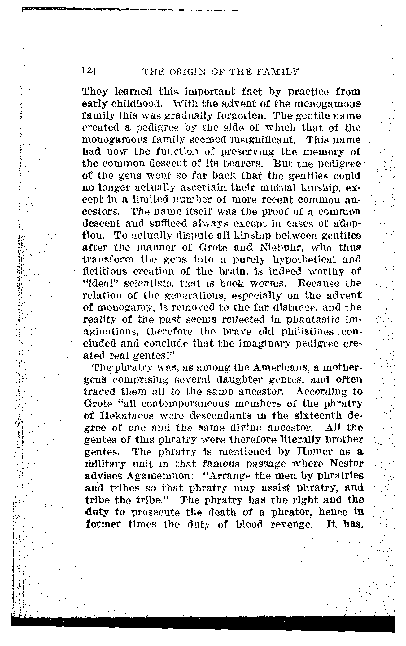 The first historian who had at least a vague conception of the nature of the gens was Niebuhr, thanks to his familiarity with the Dithmarsian families. The same source, however, is also responsible for his errors.